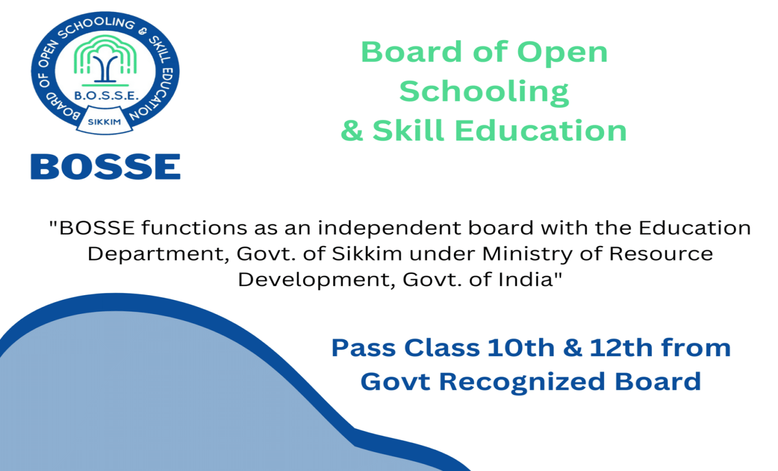 The Board of Open Schooling and Skill Education (BOSSE) in Sikkim helps students up to the pre-degree level with various educational needs, including Secondary/Senior Secondary and skill-based education. BOSSE was created under Act No.14 of 2020 by the Sikkim Legislative Assembly on 21-09-2020 to promote open schooling education locally and nationally.
